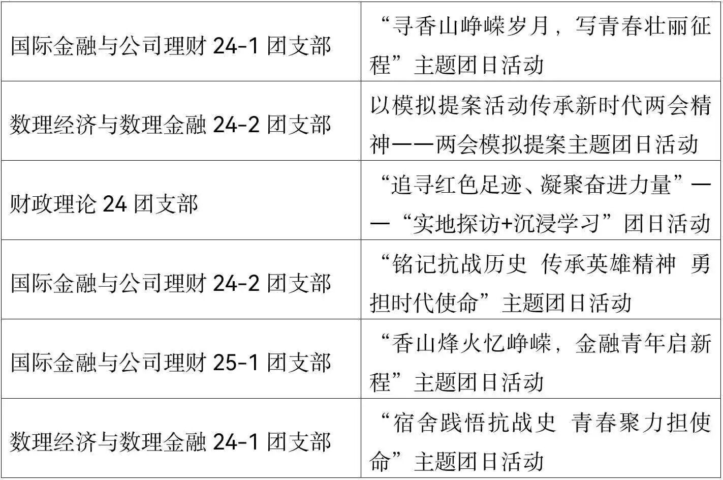 财政理论24团支部书记康子豪介绍“追寻红色足迹,凝聚奋进力量”主题团日活动,成员走访雕塑园、纪念碑与宛平城,穿插绘画接龙,开展红色故事接龙,以此创新学习形式。国金25-1团支部书记王宇凡介绍“香山烽火忆峥嵘,金融青年启新程”主题团日活动,以“红色教育+红色实践”双主线开展,深入香山革命纪念馆参观,系统学习五大主题展区。团支部于活动结束进行总结与感悟交流,宣传阵地建设成果显著。