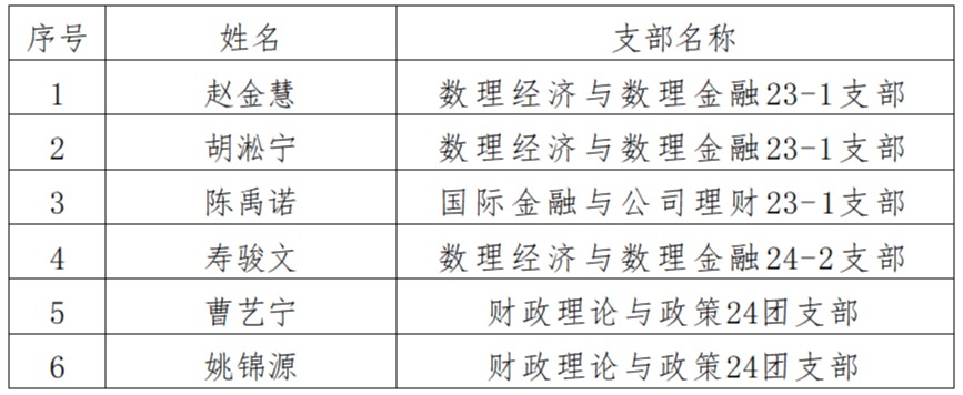 依据《太阳成集团tyc9728发展团员工作实施办法(试行)》(校团字〔2023〕37号),经各团支部委员会讨论同意并提交培养材料,公司团委预审,拟确定赵金慧等6名同学为2024年下半年团员发展对象,现将预审结果公示如下: