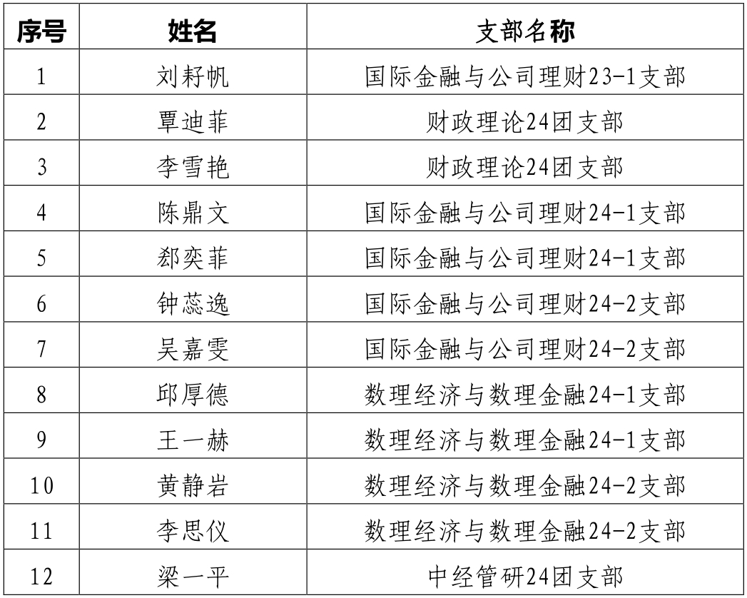 依据《太阳成集团tyc9728发展团员工作实施办法(试行)》(校团字〔2023〕37号),经各团支部委员会讨论同意并提交培养材料,公司团委预审,拟确定刘耔帆等12名同学为2025年团员发展对象,现将预审结果公示如下: