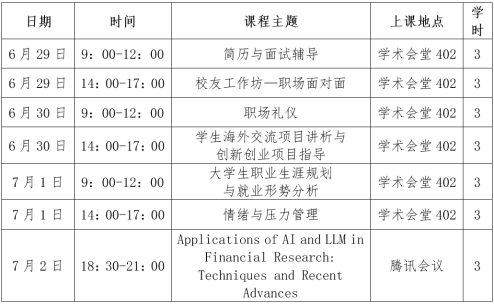 注:日程安排受授课人时间影响,可能会有所调整,以最终的实际安排为准。