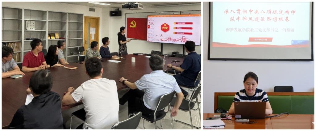 中国金融发展研究院研究生党支部书记何旭带领支部员工党员系统学习了八项规定在调查研究、会议活动、文件简报等八个方面的具体要求,深入领会其精神实质。通过剖析典型案例,全体党员受到深刻警示教育。
