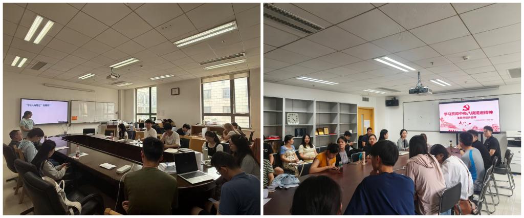 博士生党支部书记杨宇深入解读八项规定核心要义,强调改进作风、反对形式主义,严守纪律、厉行节约,并结合实际指出部分党员存在“躺平”心态等问题,要求认真对照整改。与会党员积极发言,纷纷表示要将八项规定内化于心、外化于行。