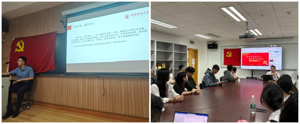 中国金融发展研究院本科生党支部书记巩家姝讲授《深入贯彻中央八项规定精神学习教育,筑牢作风建设根基》专题党课。她带领支部党员回顾了深入贯彻中央八项规定精神以来取得的成就,教育支部党员贯彻中央八项规定精神需久久为功、常抓不懈。与会党员纷纷表示将严于律己、严负己责,争做新时代有责任、敢担当、肯奋斗的优秀青年。