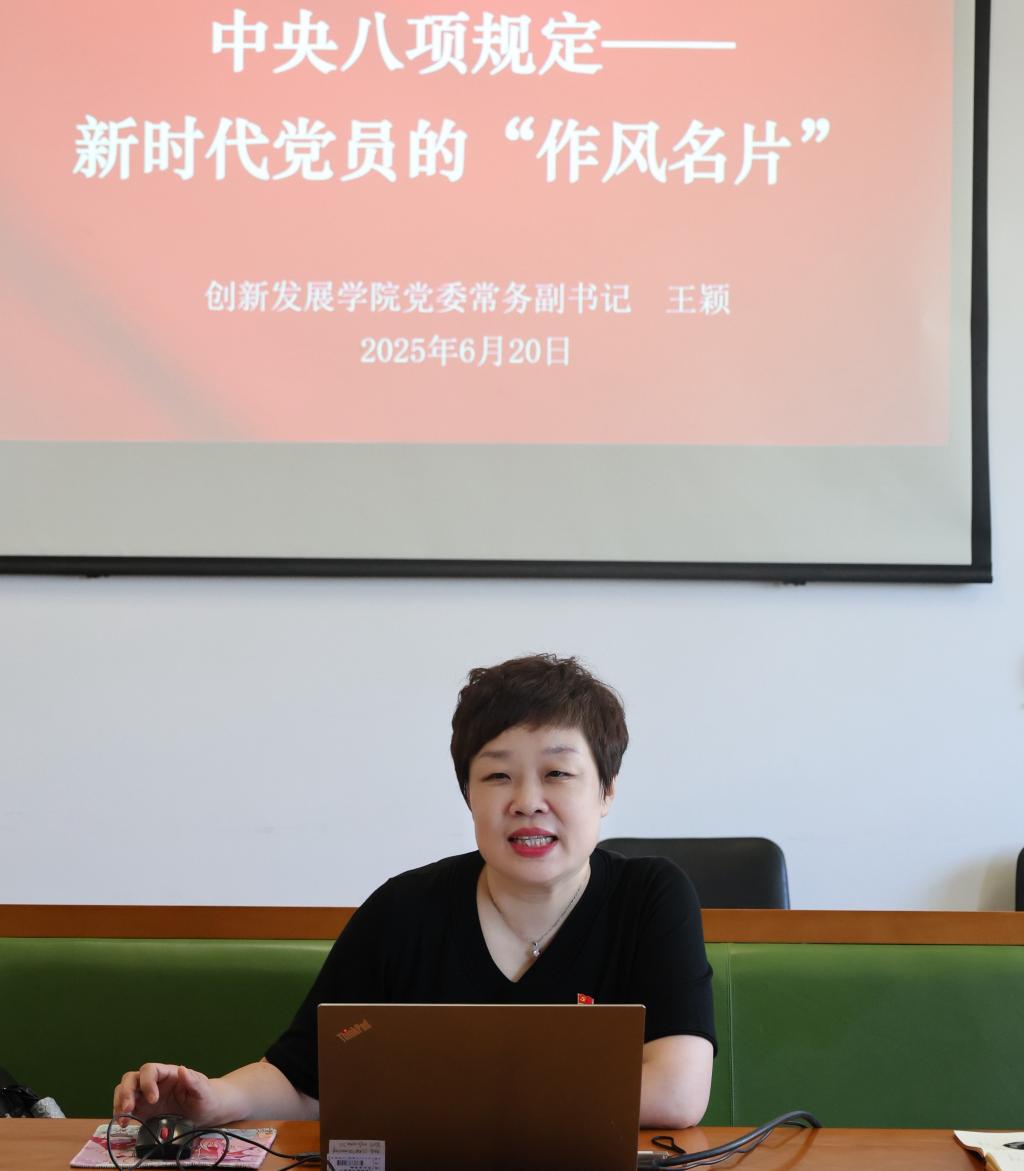 公司党委常务副书记王颖以《八项规定:新时代党员的“作风名片”》为主题进行专题党课,她指出,中央八项规定是改进作风的切入口,全体师生党员要深入理解其内涵,要把握“为民、务实、清廉”的核心,以违法犯罪和违反中央八项规定精神问题典型案例为警示,坚守作风底线与纪律红线,同步推进“厉行节约反对浪费”与系统整治工作,筑牢作风防线。她强调,全体师生党员应以良好作风和形象为基础,将中央八项规定的要求转化为真抓实干的行动,在为民服务中让这张“作风名片”愈发鲜亮。