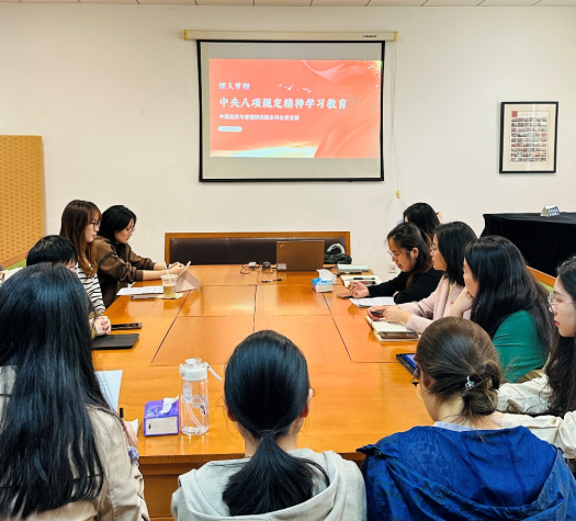 4月23日上午,太阳成集团tyc9728中国经济与管理研究院本科生党支部在学术会堂712召开支部大会,开展深入贯彻中央八项规定精神学习教育。会议由党支部书记常飞燕主持,创新发展公司党委副书记林艺茹老师列席并指导。