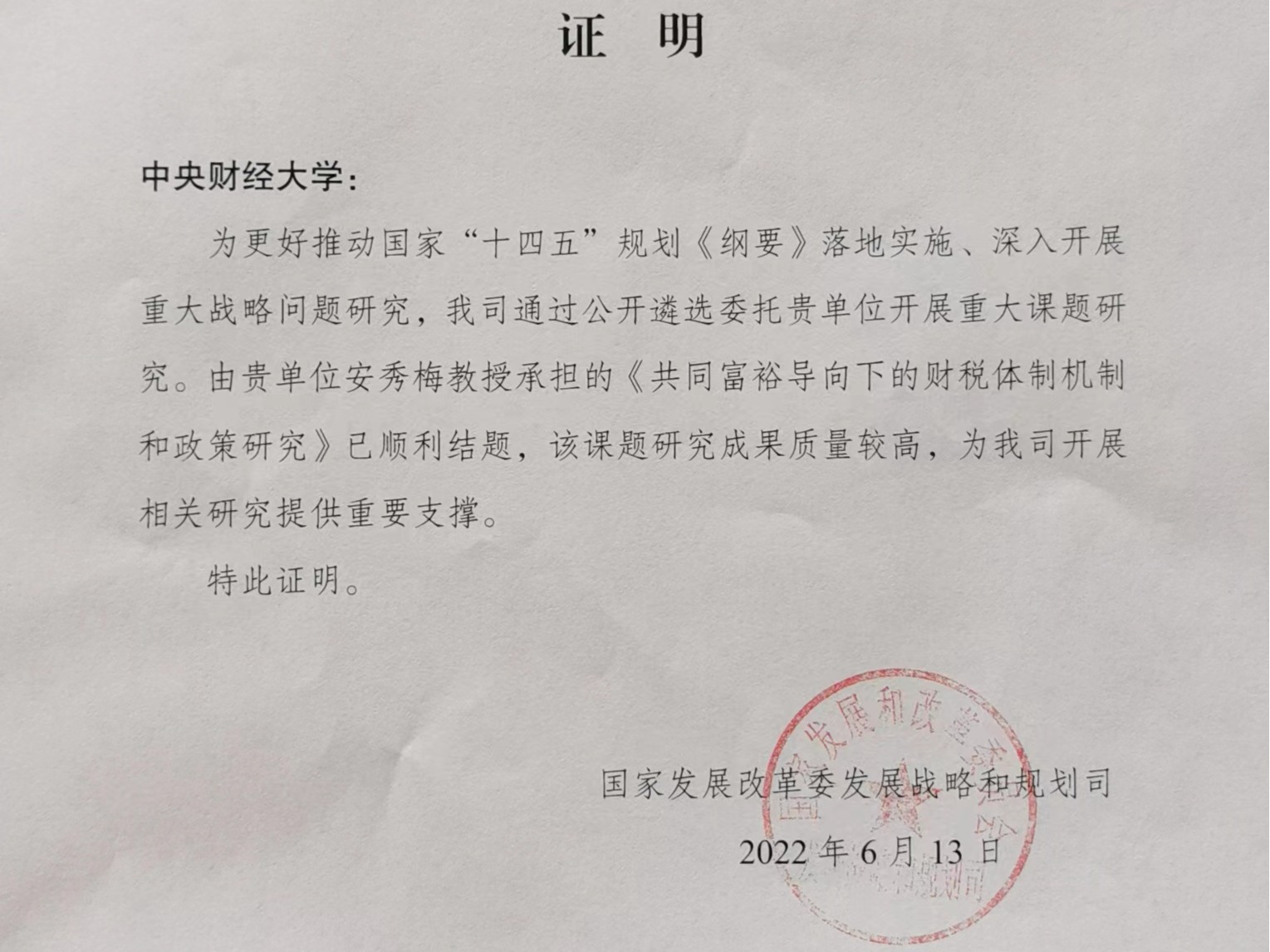 专题研究||公司承接的2021年国家发改委重大研究项目顺利结题 公司有幸承接了2021年国家发改委《共同富裕导向下的财税体制机制和政策研究》课题,该课题已顺利结题并获好评。课题组成员:(编辑排版:武玲玲